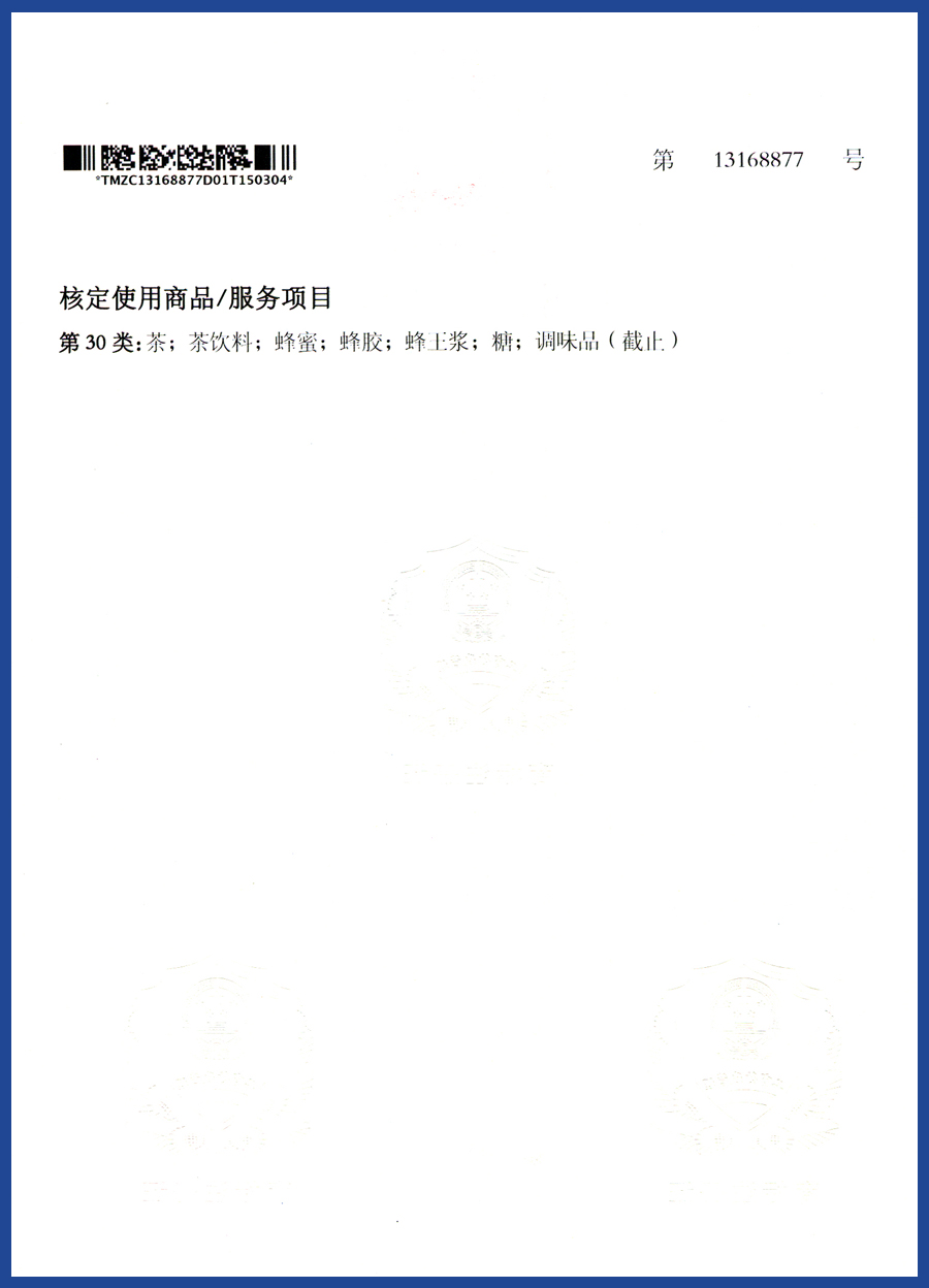 商标注册证背面