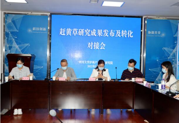 5月11日下午,由四川大学泸州产业技术研究院组织的赶黄草研究成果发布及转化对接会在泸州市科技和人才局召开。四川大学轻工科学与工程学院专家贾利蓉、段飞霞,泸州先研院、醇香茶业、蜀汉堂等企业中高层管理人员、科研代表出席,市科技和人才局三级调研员陈卫东主持。